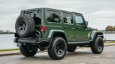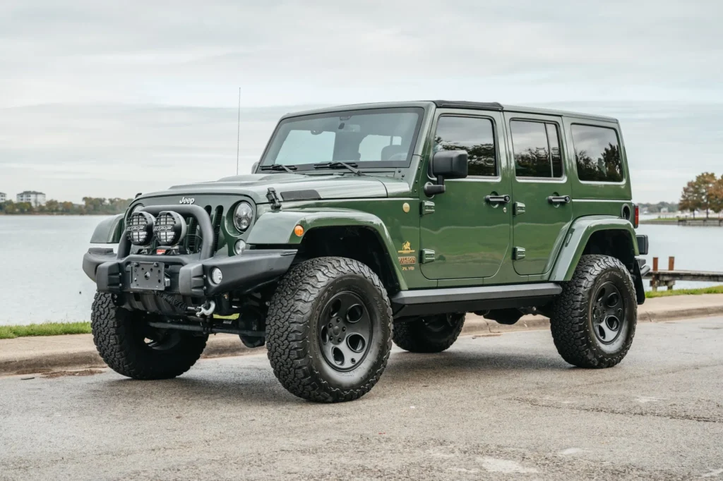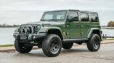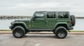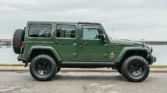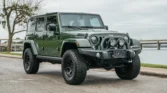 This 2014 Jeep Wrangler Unlimited Rubicon is a rare find, featuring a powerful 5.7-liter Hemi V8 engine and a five-speed automatic transmission. With only 10k miles, it’s practically new. Upgrades include a dual-range transfer case, Dana 44 axles, 17″ AEV wheels, AEV suspension lift, and a Warn winch. The green exterior is complemented by a heat-reduction hood, Bestop Sunrider roof panel, and side steps.