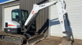 2017 Bobcat E55 Mini Excavator. Enclosed Cab W/AC (blows cold). Coupler. Third Valve. Thumb Ready. Showing 1,536 hrs. 2 Speed. 49 hp. Operating Weight 12,204 lbs. Max Digging Depth 12.9 ft. Starts, runs, drives, and operates well.