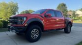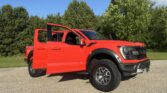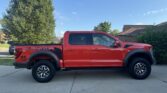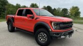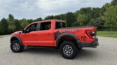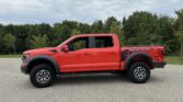 This 2021 Ford F-150 Raptor SuperCrew is finished in Code Orange Metallic over Black Nirvana upholstery and is powered by a twin-turbocharged 3.5-liter V6 linked with a 10-speed automatic transmission, a dual-range transfer case, a Torsen limited-slip front differential, and an electronically locking rear differential. Equipment includes the Convenience, Exterior Graphics, 360-Degree Camera, and Tow Technology packages as well as Fox live-valve shocks, 17″ cast-aluminum wheels, heated and ventilated power front seats, and an 18-speaker Bang & Olufsen…