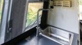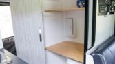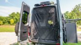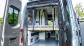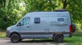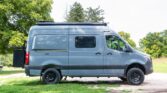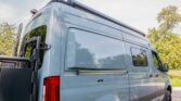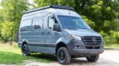 The van is finished in Blue Grey over black vinyl upholstery and powered by a 3.0-liter turbodiesel V6 mated to a seven-speed automatic transmission and a dual-range transfer case. Features include swiveling front seats, a touchscreen infotainment system, a sleeping surface with a power-operated lift, a kitchenette, a wet bath, privacy shades, and a workspace with a removable table. Additional equipment includes 17″ Method alloy wheels, LED perimeter lighting, roof-mounted solar panels, and a power-operated awning as well…